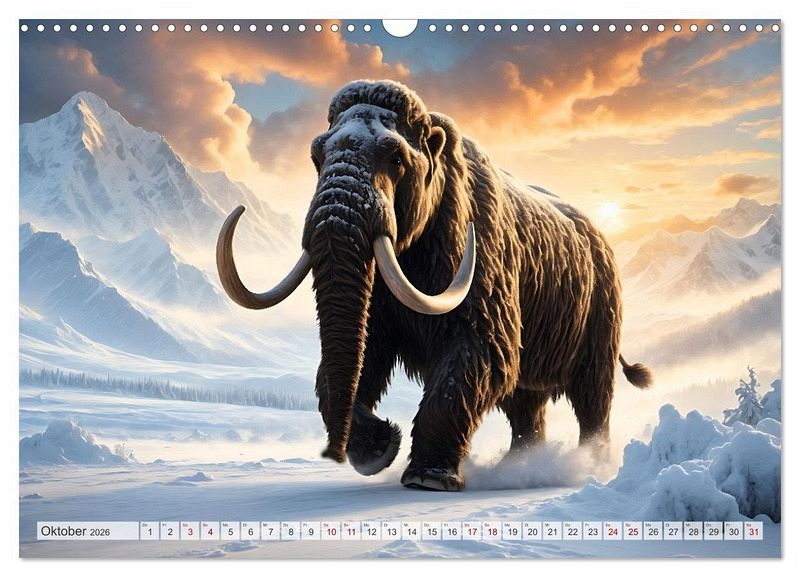 Oktober: Mammut im Sonnenuntergang derEiszeit