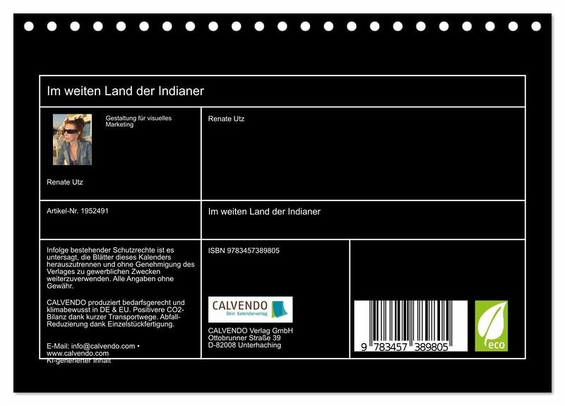 Begleite uns auf eine aufregende Reise durch die Welt der Indianer, die seit Jahrhunderten die weiten, unberührten Landstriche Nordamerikas bewohnen. Erlebe spannende Einblicke in das Leben und die Traditionen der indigenen Bevölkerung und vertiefe dein Verständnis für die indianische Kultur. Bestaune atemberaubende Bilder, welche die Vielfalt und Pracht der Natur sowie das reiche kulturelle Erbe der Indianer einfangen. Von den majestätischen Rocky Mountains bis hin zu den endlosen Prärien mit Bisonherden, deren Fleisch das Überleben der einzelnen Stämme sichert. Der mit KI kreierte Kalender von Renate Utz ist ein Fenster zu einer reichen und faszinierenden Kultur, die bis heute lebendig ist. Das ideale Geschenk für alle, die sich für Geschichte, Natur und indigene Kulturen interessieren.