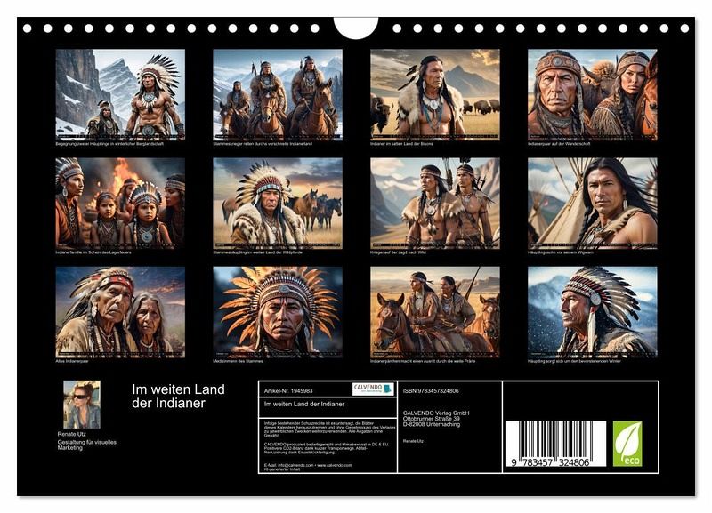 Begleite uns auf eine aufregende Reise durch die Welt der Indianer, die seit Jahrhunderten die weiten, unberührten Landstriche Nordamerikas bewohnen. Erlebe spannende Einblicke in das Leben und die Traditionen der indigenen Bevölkerung und vertiefe dein Verständnis für die indianische Kultur. Bestaune atemberaubende Bilder, welche die Vielfalt und Pracht der Natur sowie das reiche kulturelle Erbe der Indianer einfangen. Von den majestätischen Rocky Mountains bis hin zu den endlosen Prärien mit Bisonherden, deren Fleisch das Überleben der einzelnen Stämme sichert. Der mit KI kreierte Kalender von Renate Utz ist ein Fenster zu einer reichen und faszinierenden Kultur, die bis heute lebendig ist. Das ideale Geschenk für alle, die sich für Geschichte, Natur und indigene Kulturen interessieren.