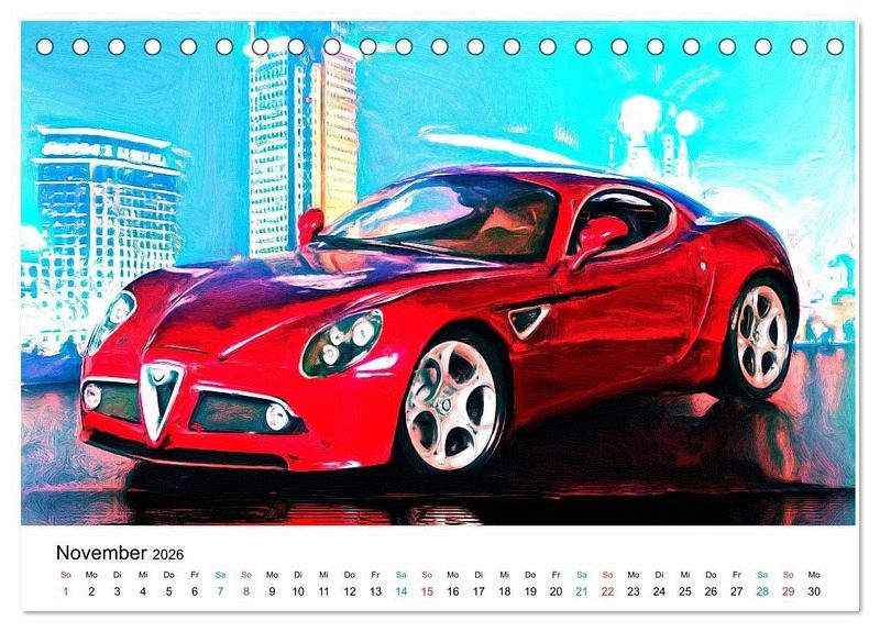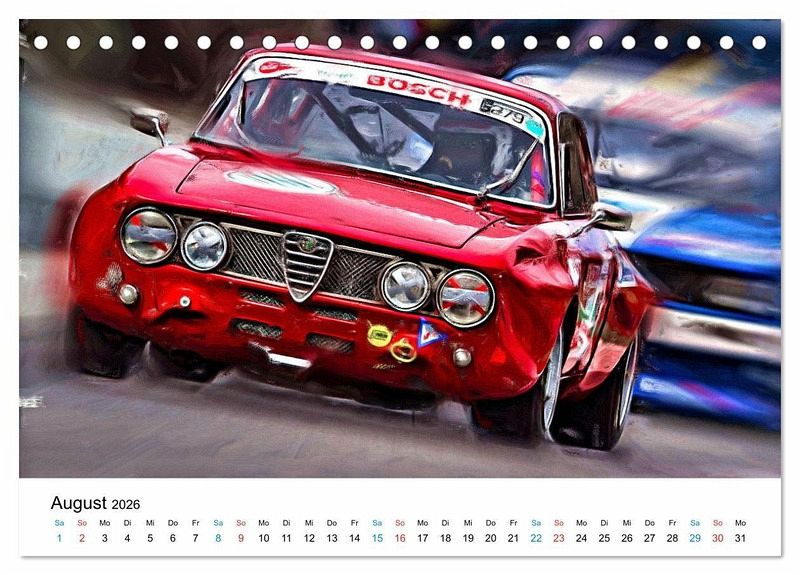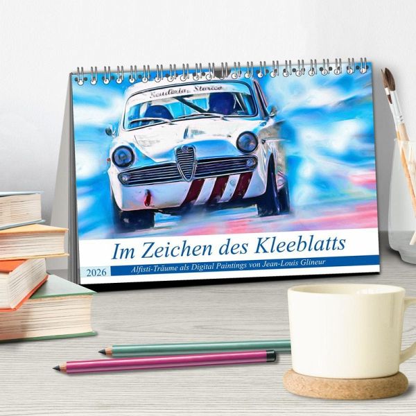 Die Fahrzeugmarke Alfa Romeo mit dem vierblättrigen Kleeblatt im Logo - Quadrifoglio Verde genannt - steht für sportliche Limousinen, rasante Zweisitzer und Erfolge im Motorsport. Der Künstler und Gestalter Jean-Louis Glineur widmete dem 1910 in Mailand gegründeten Automobilhersteller bereits viele Motive, teils nach Bildvorlagen der Motorsportfotografen Jerry Andre und Angelo Poletto.