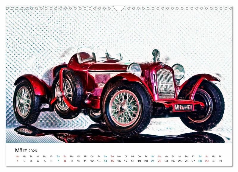 Die Fahrzeugmarke Alfa Romeo mit dem vierblättrigen Kleeblatt im Logo - Quadrifoglio Verde genannt - steht für sportliche Limousinen, rasante Zweisitzer und Erfolge im Motorsport. Der Künstler und Gestalter Jean-Louis Glineur widmete dem 1910 in Mailand gegründeten Automobilhersteller bereits viele Motive, teils nach Bildvorlagen der Motorsportfotografen Jerry Andre und Angelo Poletto.