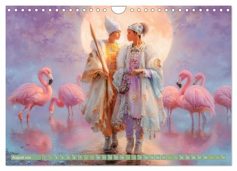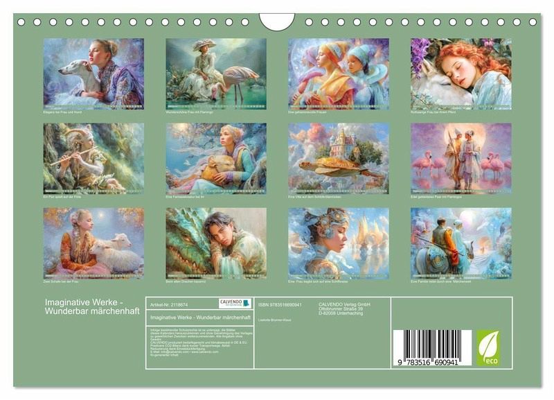 Eine kreative malerische Welt von märchenhaften Geschichten erwartet Sie. Sei es eine Pan der auf der Flöte spielt oder eine elegante Frau bei einem Flamingo. Eine träumerische Farbpalette verleiht den Werken eine Note jenseits der Realität. Für alle Fantasiefans.