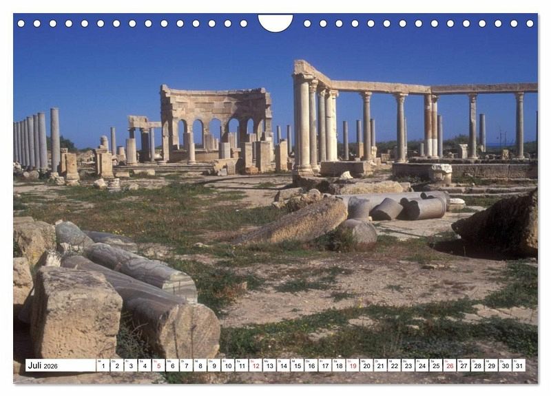 Juli: Marktplatz der römischen Stadt Leptis Magna im heutigen Libyen