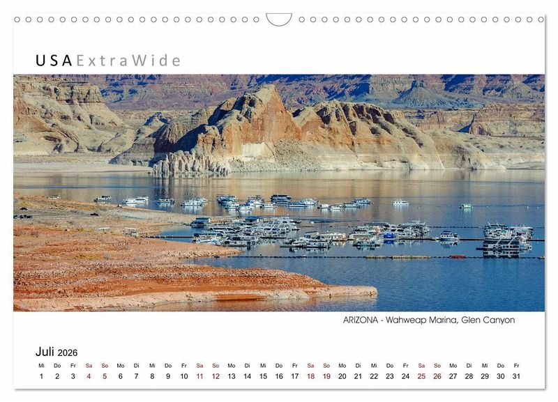 In der Kalenderserie von Dieter Wilczek "USA Extra Wide" zeigt der Erlebnisfotograf die faszinierenden Landschaften der USA in besonders ausdrucksstarken Panoramabildern. Arizona verdient seinen Namen als "Grand Canyon State" zweifellos zu Recht, wie die Aufnahmen belegen: grandiose und atemberaubende Blicke vom Hochplateau in die Tiefe, weltberühmte Wildwest Kulissen, Wüstenlandschaften, Landstriche voller Saguaro Kakteen und zahlreiche Ruinen der Pueblo Indianer.