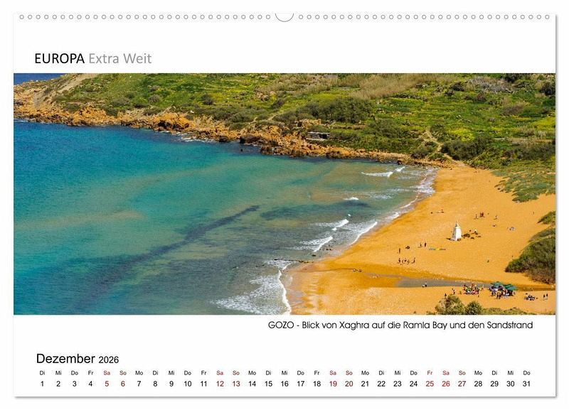 In der Kalenderserie von Dieter-M. Wilczek "EUROPA Extra Weit" zeigt der Erlebnisfotograf die faszinierenden Städte & Landschaften Europas in besonders ausdrucksstarken Panoramabildern. Wie seine Aufnahmen belegen, hat die Insel Gozo ihren ganz eigenen unwiderstehlichen Charme. Lassen Sie sich begeistern und holen Sie sich ein Stück mediterranes Flair nach Hause.