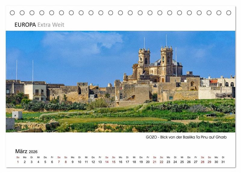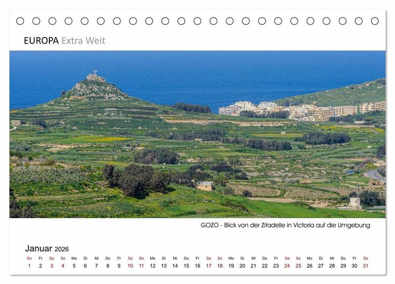 In der Kalenderserie von Dieter-M. Wilczek "EUROPA Extra Weit" zeigt der Erlebnisfotograf die faszinierenden Städte & Landschaften Europas in besonders ausdrucksstarken Panoramabildern. Wie seine Aufnahmen belegen, hat die Insel Gozo ihren ganz eigenen unwiderstehlichen Charme. Lassen Sie sich begeistern und holen Sie sich ein Stück mediterranes Flair nach Hause.
