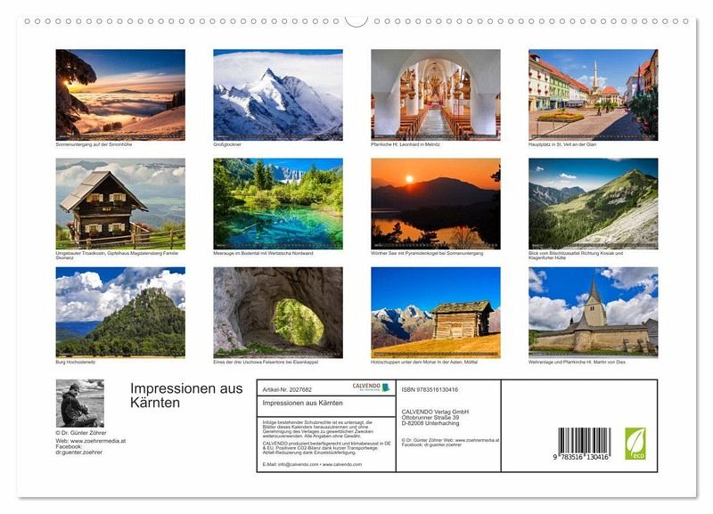 PREMIUM-LINIE - Brillanter Fotokalender mit 12 wunderschönen Motiven, Kunstdruck in Hochglanz in Museumsqualität.QUALITÄT - edle Materialien, stabile Rückwand mit 2 innovativen Einstecktaschen für eine optimale Präsentation an der Wand.NACHHALTIG - deutliche Abfallreduzierung durch bedarfsgerechte Einzelstückfertigung, umweltfreundliches FSC-zertifiziertes Papier, Produktion in Deutschland, klimabewusste Logistik.PERFEKTES GESCHENK - Kalender für Freunde und Familie, für Kinder und Erwachsene, jung und alt, zu Weihnachten, Geburtstag oder zwischendurch.Kultur und Natur in Kärnten von Autor(in): Günter Zöhrer