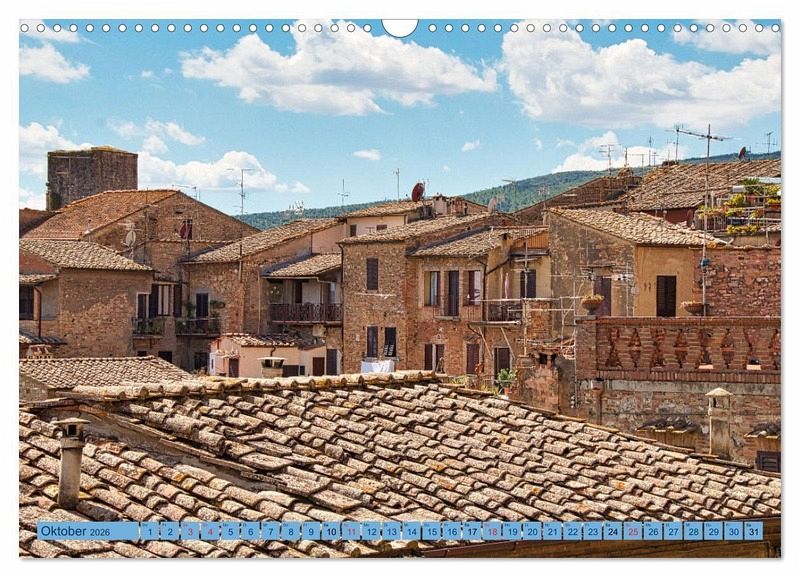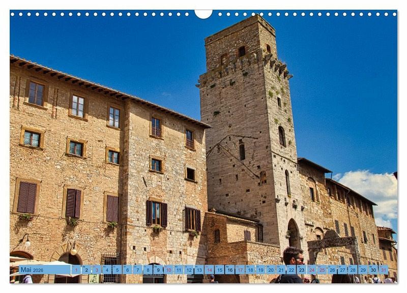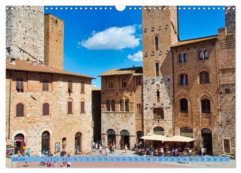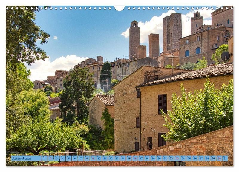San Gimignano ist die Mittelalterstadt im Herzen der Toskana. Lassen Sie sich in diesem Kalender entführen zu einem Sommertag in dieser Stadt.