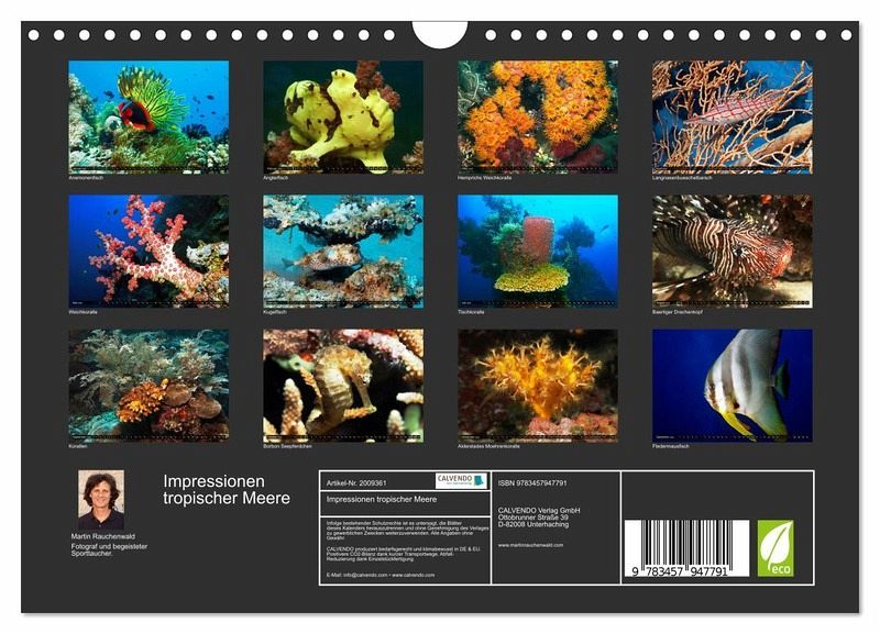 QUALITÄT - Hochwertiger Fotokalender mit 12 wunderschönen Motiven auf lichtbeständigem Bilderdruckpapier, robuste Spiralbindung mit Aufhängebügel.NACHHALTIG - deutliche Abfallreduzierung durch bedarfsgerechte Einzelstückfertigung, umweltfreundliches FSC-zertifiziertes Papier, Produktion in Deutschland, klimabewusste Logistik.PERFEKTES GESCHENK - Kalender für Freunde und Familie, für Kinder und Erwachsene, jung und alt, zu Weihnachten, Geburtstag oder zwischendurch.VIELFALT - Bildkalender in verschiedenen Formaten, z.B. DIN A5, DIN A4, DIN A3 sowie DIN A2. Ob Naturmotiv, Gemälde oder Fotos, ideal für ein persönliches Wohlfühlambiente.Die faszinierende Unterwasserwelt tropischer Meere von Autor(in): Martin Rauchenwald