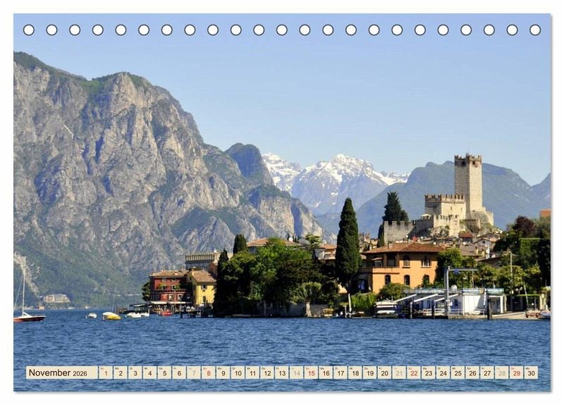 Der Gardasee - im Norden umrahmt von Bergen - im Süden mediterran - romantische Städtchen, kleine Hafenanlagen, wandern, schwimmen, surfen - ein Urlaubsparadies für Erholungssuchende. Geniessen Sie jeden Monat ein wunderschönes Bild rund um den Gardasee!