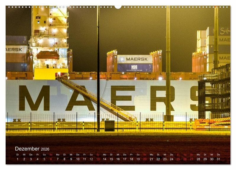 Dezember: Containerschiff MAERSK EVORA bei Nacht