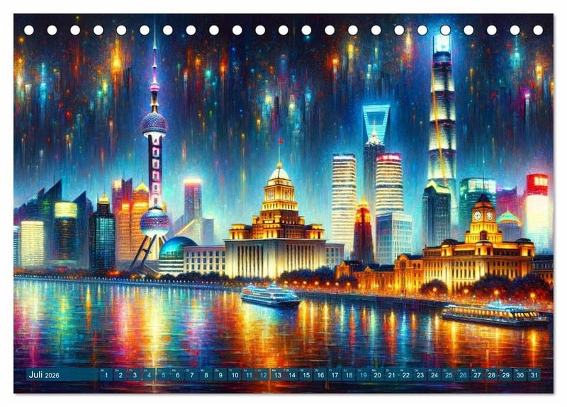 Entdecken Sie die Schönheit globaler Metropolen, eingefangen durch das kreative Auge modernster Technologie. Unsere impressionistischen Skylines, visualisiert von künstlicher Intelligenz, bringen jeden Monat einzigartige Farbexplosionen und faszinierende Perspektiven in Ihr Zuhause. Tauchen Sie ein in ein Jahr voller inspirierender Ansichten, die die Grenzen zwischen Technologie und Kunst neu definieren.
