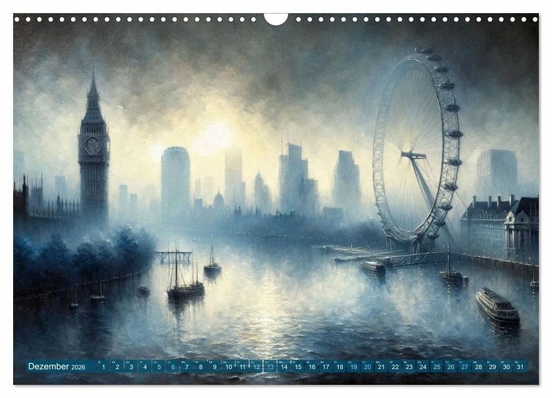 Dezember: Nebelschleier über London: Ein morgendlicher AI-Traum an derThemse