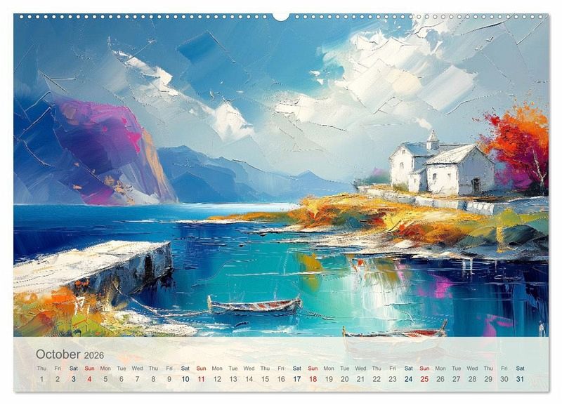 This calendar features illustrations created using artificial intelligence and subsequently edited with Photoshop in the Impressionist style. The calendar is perfect for those who love Impressionistic landscape images. Printing on high-quality paper ensures durability and a fantastic appearance.