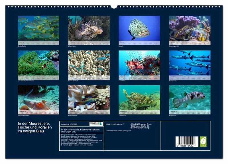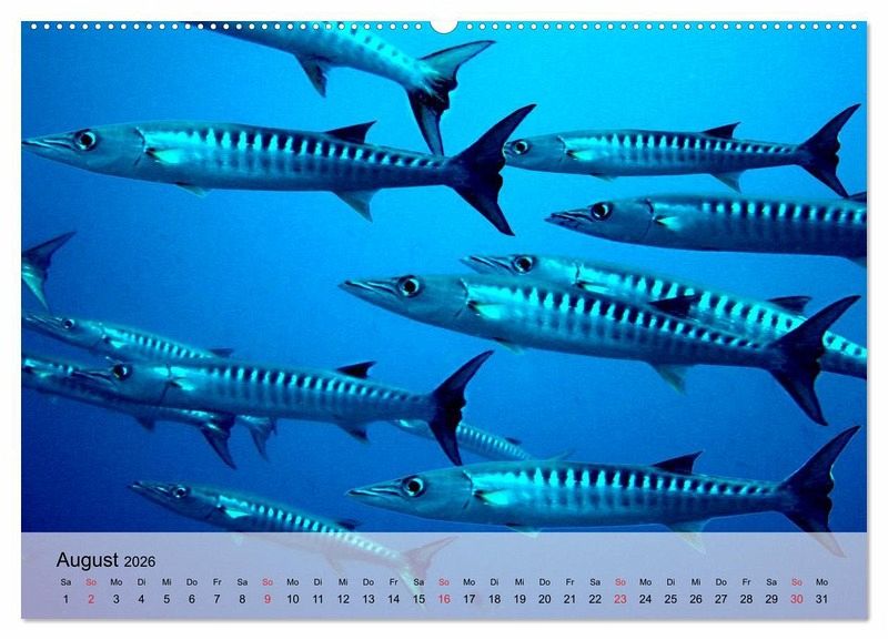 Dieser Kalender ist eine Reise durch die vielfältige Unterwasserwelt der Meere. Fische, Korallen und Schwärme wecken die Sehnsucht nach einem Tauchgang.
