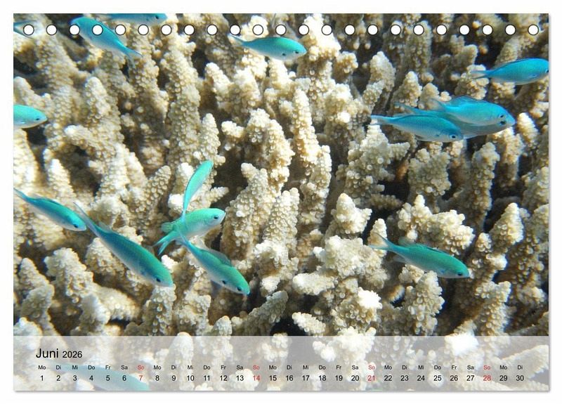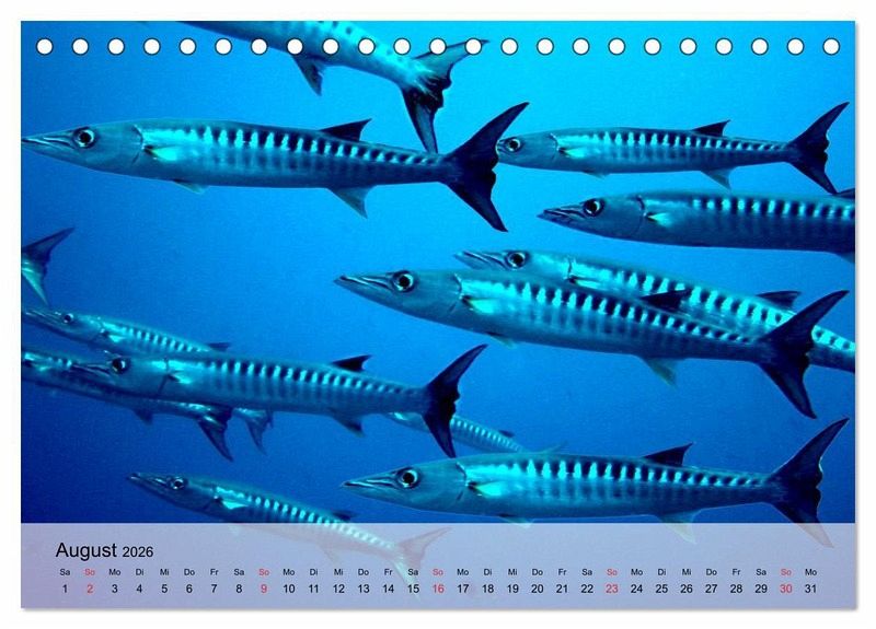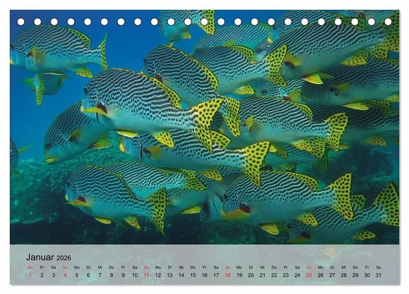 Dieser Kalender ist eine Reise durch die vielfältige Unterwasserwelt der Meere. Fische, Korallen und Schwärme wecken die Sehnsucht nach einem Tauchgang.