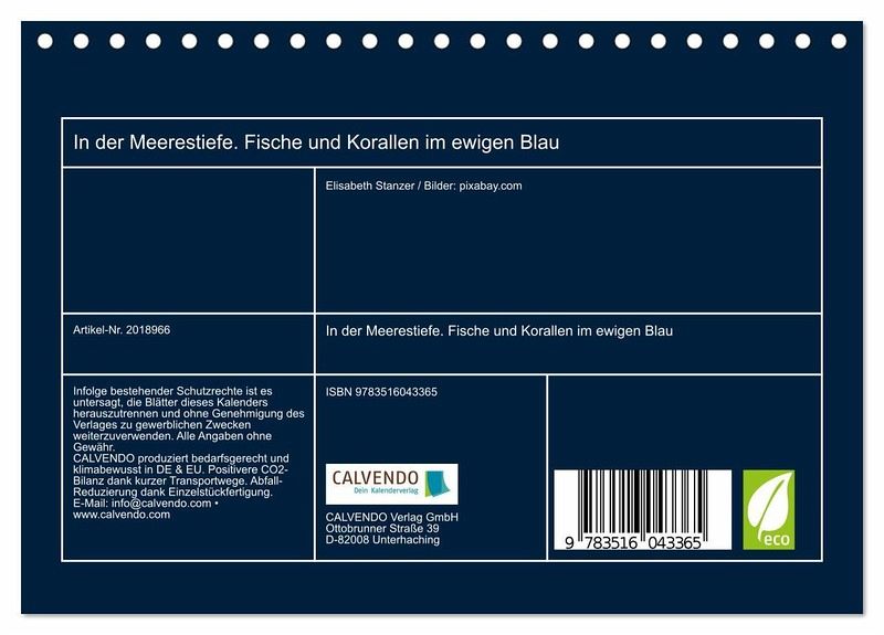 QUALITÄT - Hochwertiger Fotokalender mit 12 wunderschönen Motiven auf lichtbeständigem Bilderdruckpapier, robuste Spiralbindung.NACHHALTIG - deutliche Abfallreduzierung durch bedarfsgerechte Einzelstückfertigung, umweltfreundliches FSC-zertifiziertes Papier, Produktion in Deutschland, klimabewusste Logistik.PERFEKTES GESCHENK - Kalender für Freunde und Familie, für Kinder und Erwachsene, jung und alt, zu Weihnachten, Geburtstag oder zwischendurch.VIELFALT - Bildkalender in verschiedenen Formaten, z.B. DIN A5, DIN A4, DIN A3 sowie DIN A2. Ob Naturmotiv, Gemälde oder Fotos, ideal für ein persönliches Wohlfühlambiente.Abtauchen in die blauen Tiefen der Ozeane von Autor(in): Elisabeth Stanzer