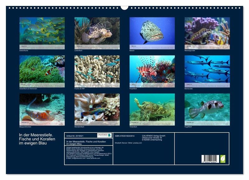Dieser Kalender ist eine Reise durch die vielfältige Unterwasserwelt der Meere. Fische, Korallen und Schwärme wecken die Sehnsucht nach einem Tauchgang.
