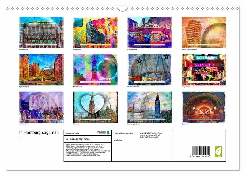 Hamburg ist eine der schönste Städte und das Leben tobt dort. Alte Häuser und neue Gebäude gehören zu gesamten Stadtbild. Dieser Pop Art Kalender vom Künstler Nico Bielow, nimmt sie mit auf eine Stadttour durch Hamburg.