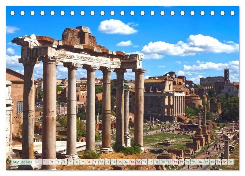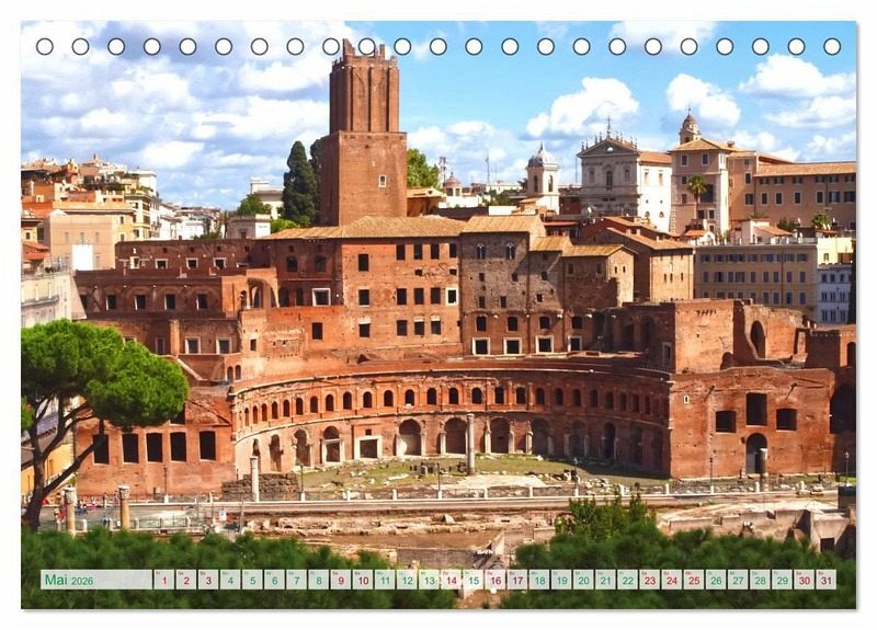 Rom ist das Schmuckstück Italiens. Zahlreiche Sehenswürdigkeiten locken Besucher aus aller Welt an. Dieser Kalender zeigt sie in seinen schönsten Farben. Genießen Sie die Ansichten berühmter antiker Gebäude und glanzvolle Fotos abseits des Tourismus. Holen Sie sich die Weltstadt nach Hause und erfreuen Sie sich das ganze Jahr an der Liebe zu ihr.