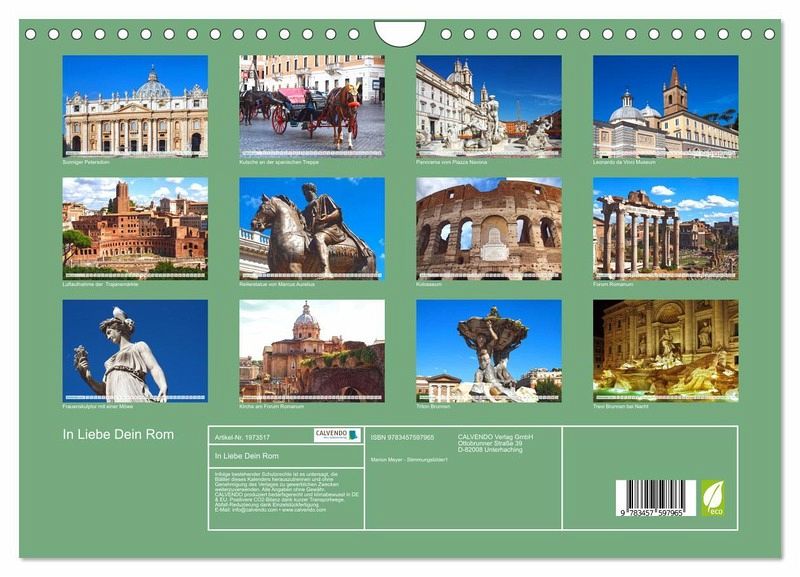 QUALITÄT - Hochwertiger Fotokalender mit 12 wunderschönen Motiven auf lichtbeständigem Bilderdruckpapier, robuste Spiralbindung mit Aufhängebügel.NACHHALTIG - deutliche Abfallreduzierung durch bedarfsgerechte Einzelstückfertigung, umweltfreundliches FSC-zertifiziertes Papier, Produktion in Deutschland, klimabewusste Logistik.PERFEKTES GESCHENK - Kalender für Freunde und Familie, für Kinder und Erwachsene, jung und alt, zu Weihnachten, Geburtstag oder zwischendurch.VIELFALT - Bildkalender in verschiedenen Formaten, z.B. DIN A5, DIN A4, DIN A3 sowie DIN A2. Ob Naturmotiv, Gemälde oder Fotos, ideal für ein persönliches Wohlfühlambiente.Rom ist die wunderbarste Stadt der Welt von Autor(in): Stimmungsbilder1