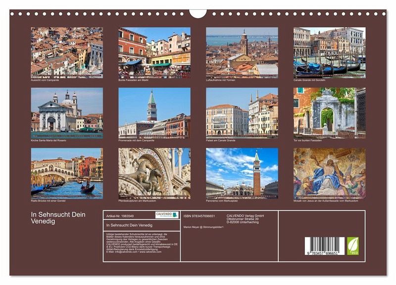 QUALITÄT - Hochwertiger Fotokalender mit 12 wunderschönen Motiven auf lichtbeständigem Bilderdruckpapier, robuste Spiralbindung mit Aufhängebügel.NACHHALTIG - deutliche Abfallreduzierung durch bedarfsgerechte Einzelstückfertigung, umweltfreundliches FSC-zertifiziertes Papier, Produktion in Deutschland, klimabewusste Logistik.PERFEKTES GESCHENK - Kalender für Freunde und Familie, für Kinder und Erwachsene, jung und alt, zu Weihnachten, Geburtstag oder zwischendurch.VIELFALT - Bildkalender in verschiedenen Formaten, z.B. DIN A5, DIN A4, DIN A3 sowie DIN A2. Ob Naturmotiv, Gemälde oder Fotos, ideal für ein persönliches Wohlfühlambiente.Der Zauber von Venedig festgehalten in Fotografien von Autor(in): Stimmungsbilder1