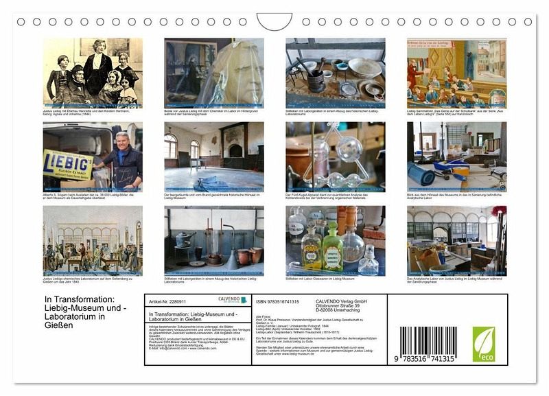 Entdecken Sie das Liebig-Museum und -Laboratorium in Gießen neu! Unser exklusiver Kalender zeigt faszinierende Einblicke in die Sanierungsphase nach dem Brandschaden von 2022. Monat für Monat erleben Sie, wie das historische Erbe und die moderne Restaurierung des Kulturdenkmals miteinander verschmelzen. Authentische Fotos dokumentieren die Fortschritte und lassen Sie an der Wiederherstellung dieses einzigartigen Ortes teilhaben. Sichern Sie sich Ihr Exemplar und begleiten Sie das Liebig-Museum auf dem Weg zurück zu alter Pracht - ein Muss für Wissenschaftsbegeisterte und Kulturliebhaber!