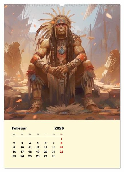 Indianische Motive faszinieren viele Menschen. Die Ureinwohner von Amerika sind Sinnbild für Freiheit, Spritualität, Stolz und Würde. Das Leben in Einheit mit der Natur, die Jagd in den Wäldern und weiten Graslandschaften und das einfache Leben in kleinen Dörfern, begeistert nicht nur Naturfreunde. Dieser Kalender wurde mit KI erstellt und zeigt Fantasiebilder von Ureinwohnern und tapferen Kriegern.