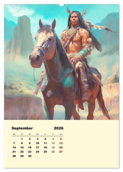 Indianische Motive faszinieren viele Menschen. Die Ureinwohner von Amerika sind Sinnbild für Freiheit, Spritualität, Stolz und Würde. Das Leben in Einheit mit der Natur, die Jagd in den Wäldern und weiten Graslandschaften und das einfache Leben in kleinen Dörfern, begeistert nicht nur Naturfreunde. Dieser Kalender wurde mit KI erstellt und zeigt Fantasiebilder von Ureinwohnern und tapferen Kriegern.