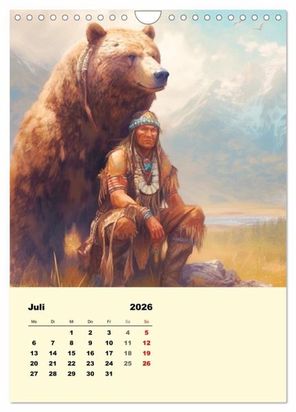 Indianische Motive faszinieren viele Menschen. Die Ureinwohner von Amerika sind Sinnbild für Freiheit, Spritualität, Stolz und Würde. Das Leben in Einheit mit der Natur, die Jagd in den Wäldern und weiten Graslandschaften und das einfache Leben in kleinen Dörfern, begeistert nicht nur Naturfreunde. Dieser Kalender wurde mit KI erstellt und zeigt Fantasiebilder von Ureinwohnern und tapferen Kriegern.