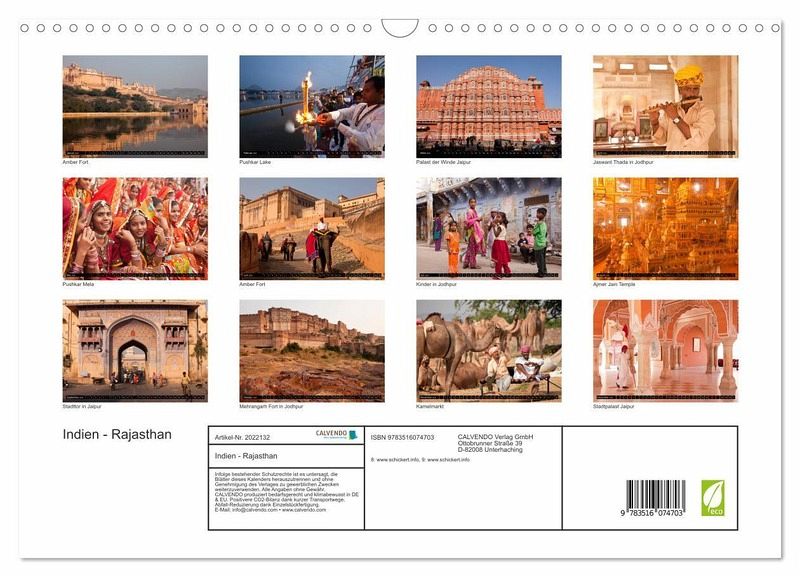 QUALITÄT - Hochwertiger Fotokalender mit 12 wunderschönen Motiven auf lichtbeständigem Bilderdruckpapier, robuste Spiralbindung mit Aufhängebügel.NACHHALTIG - deutliche Abfallreduzierung durch bedarfsgerechte Einzelstückfertigung, umweltfreundliches FSC-zertifiziertes Papier, Produktion in Deutschland, klimabewusste Logistik.PERFEKTES GESCHENK - Kalender für Freunde und Familie, für Kinder und Erwachsene, jung und alt, zu Weihnachten, Geburtstag oder zwischendurch.VIELFALT - Bildkalender in verschiedenen Formaten, z.B. DIN A5, DIN A4, DIN A3 sowie DIN A2. Ob Naturmotiv, Gemälde oder Fotos, ideal für ein persönliches Wohlfühlambiente.Die sehenswerte und bunte Region Rajasthan im Norden Indiens von Autor(in): Peter Schickert
