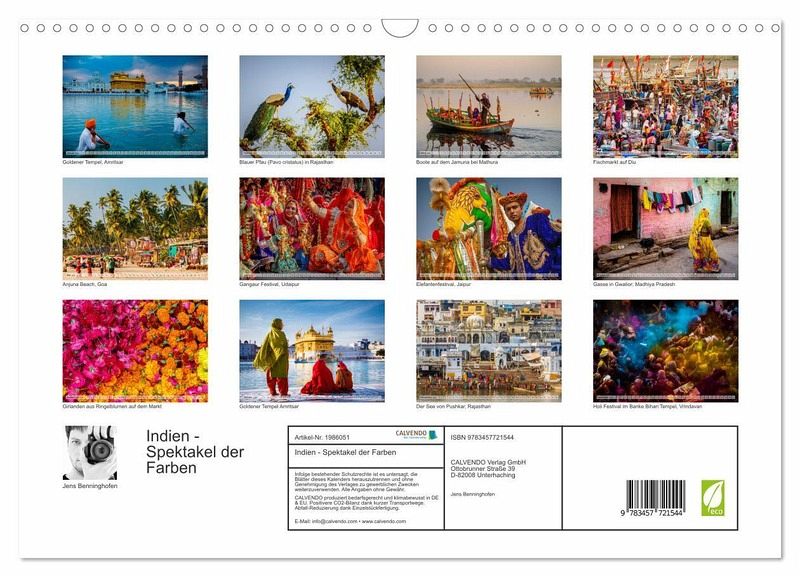 QUALITÄT - Hochwertiger Fotokalender mit 12 wunderschönen Motiven auf lichtbeständigem Bilderdruckpapier, robuste Spiralbindung mit Aufhängebügel.NACHHALTIG - deutliche Abfallreduzierung durch bedarfsgerechte Einzelstückfertigung, umweltfreundliches FSC-zertifiziertes Papier, Produktion in Deutschland, klimabewusste Logistik.PERFEKTES GESCHENK - Kalender für Freunde und Familie, für Kinder und Erwachsene, jung und alt, zu Weihnachten, Geburtstag oder zwischendurch.VIELFALT - Bildkalender in verschiedenen Formaten, z.B. DIN A5, DIN A4, DIN A3 sowie DIN A2. Ob Naturmotiv, Gemälde oder Fotos, ideal für ein persönliches Wohlfühlambiente.Intensiv, leuchtend, bunt - das ist Indien! von Autor(in): Jens Benninghofen
