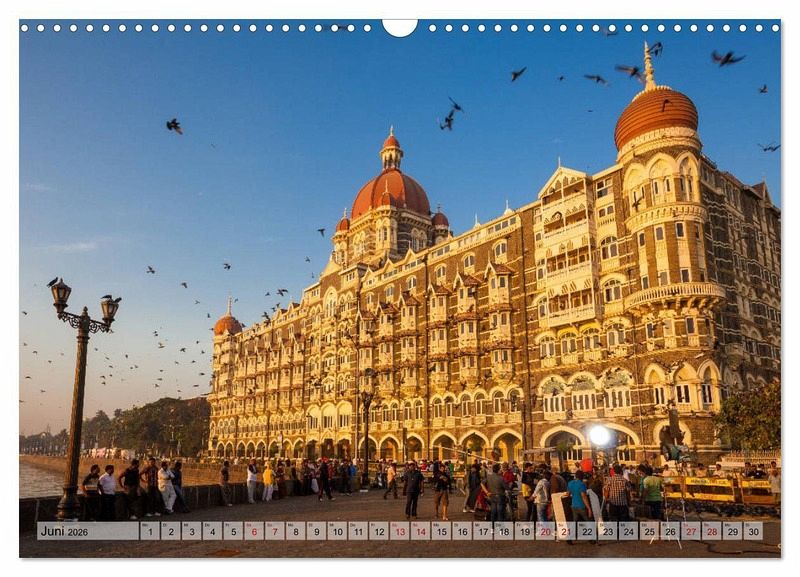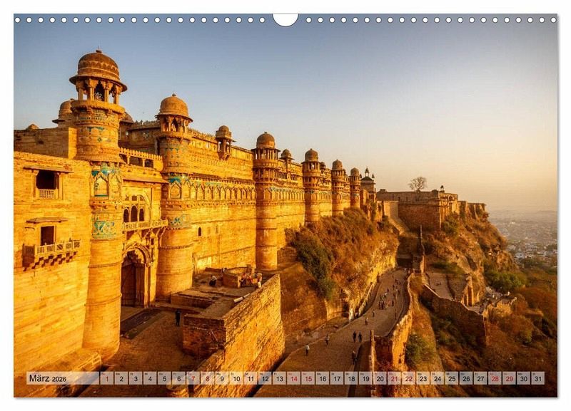 Die 12 farbenprächtigen Aufnahmen zeigen Indiens spektakulärste Baudenkmäler in bestem Licht. Dabei sind das weltbekannte Taj Mahal, die Maharaja Paläste von Jaipur, Jodhpur und Udaipur in Rajasthan, der Palast von Gwalior sowie weniger bekannte Kleinode wie das Mahabat Maqbara in Junagadh, Gujarat, oder die Chhatris von Orchha in Madhya Pradesh.