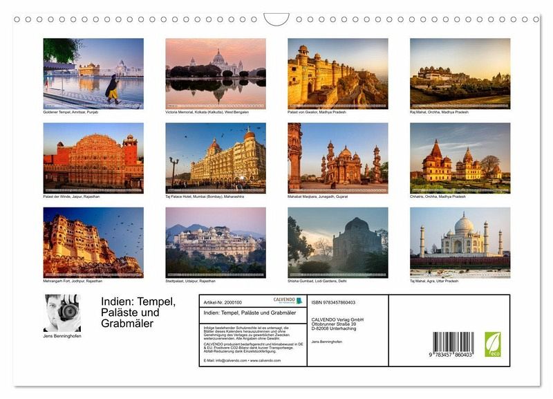 QUALITÄT - Hochwertiger Fotokalender mit 12 wunderschönen Motiven auf lichtbeständigem Bilderdruckpapier, robuste Spiralbindung mit Aufhängebügel.NACHHALTIG - deutliche Abfallreduzierung durch bedarfsgerechte Einzelstückfertigung, umweltfreundliches FSC-zertifiziertes Papier, Produktion in Deutschland, klimabewusste Logistik.PERFEKTES GESCHENK - Kalender für Freunde und Familie, für Kinder und Erwachsene, jung und alt, zu Weihnachten, Geburtstag oder zwischendurch.VIELFALT - Bildkalender in verschiedenen Formaten, z.B. DIN A5, DIN A4, DIN A3 sowie DIN A2. Ob Naturmotiv, Gemälde oder Fotos, ideal für ein persönliches Wohlfühlambiente.Indiens spektakulärste Baudenkmäler von Autor(in): Jens Benninghofen
