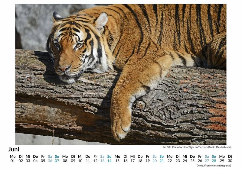Entdecken Sie die majestätische Schönheit des Indochinesischen Tigers in diesem exklusiven Wandkalender! Mit 12 atemberaubenden Motiven dieser seltenen Großkatze bringt dieser Kalender die Faszination der Natur direkt in Ihr Zuhause. Jedes Bild wurde sorgfältig ausgewählt und auf hochwertigem, lichtbeständigem Bilderdruckpapier gedruckt, um die beeindruckende Eleganz des Tigers perfekt zur Geltung zu bringen. Gedruckt in Deutschland auf FSC-zertifiziertem Papier, vereint dieser Kalender Nachhaltigkeit und Ästhetik. Ein Muss für Tierliebhaber und Naturschützer - holen Sie sich ein Stück Wildnis an Ihre Wand und lassen Sie sich jeden Monat aufs Neue inspirieren! Hochwertig Erleben Sie ein Jahr voller Eleganz mit unserem Premium-Fotokalender. Jedes der 12 Motive ist auf hochwertigem, lichtbeständigem Bilderdruckpapier gedruckt, um die Lebendigkeit jedes Bildes zu bewahren. Die robuste Spiralbindung gewährleistet Langlebigkeit und einfache Handhabung. Nachhaltig Unser Engagement für die Umwelt spiegelt sich in jedem Exemplar wider. Durch die Produktion auf Abruf reduzieren wir signifikant unseren Abfall. Wir verwenden ausschließlich umweltfreundliches, FSC-zertifiziertes Papier. Stolz gefertigt in Deutschland, achten wir bei unserer Logistik auf Klimaschutz, um unseren ökologischen Fußabdruck zu minimieren. Das ideale Geschenk Dieser Kalender ist das perfekte Präsent für jeden Anlass - ob Weihnachten, Geburtstage oder einfach als liebevolle Aufmerksamkeit zwischendurch. Geeignet für Freunde, Familie, Kinder und Erwachsene gleichermaßen, bereichert er jedes Zuhause mit seiner Vielfalt und Schönheit, unabhängig vom Alter der Beschenkten.