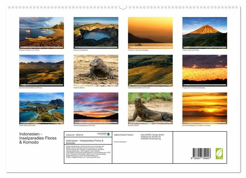 PREMIUM-LINIE - Brillanter Fotokalender mit 12 wunderschönen Motiven, Kunstdruck in Hochglanz in Museumsqualität.QUALITÄT - edle Materialien, stabile Rückwand mit 2 innovativen Einstecktaschen für eine optimale Präsentation an der Wand.NACHHALTIG - deutliche Abfallreduzierung durch bedarfsgerechte Einzelstückfertigung, umweltfreundliches FSC-zertifiziertes Papier, Produktion in Deutschland, klimabewusste Logistik.PERFEKTES GESCHENK - Kalender für Freunde und Familie, für Kinder und Erwachsene, jung und alt, zu Weihnachten, Geburtstag oder zwischendurch.Landschaft und Natur aus dem indonesischem Inselparadies Flores & Komodo von Autor(in): Sandra Schänzer