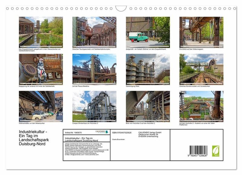 QUALITÄT - Hochwertiger Fotokalender mit 12 wunderschönen Motiven auf lichtbeständigem Bilderdruckpapier, robuste Spiralbindung mit Aufhängebügel.NACHHALTIG - deutliche Abfallreduzierung durch bedarfsgerechte Einzelstückfertigung, umweltfreundliches FSC-zertifiziertes Papier, Produktion in Deutschland, klimabewusste Logistik.PERFEKTES GESCHENK - Kalender für Freunde und Familie, für Kinder und Erwachsene, jung und alt, zu Weihnachten, Geburtstag oder zwischendurch.VIELFALT - Bildkalender in verschiedenen Formaten, z.B. DIN A5, DIN A4, DIN A3 sowie DIN A2. Ob Naturmotiv, Gemälde oder Fotos, ideal für ein persönliches Wohlfühlambiente.Landschaftspark Duisburg-Nord. Entdecken, staunen, erleben in dem ehemaligen Hüttenwerk. von Autor(in): Gisela Braunleder