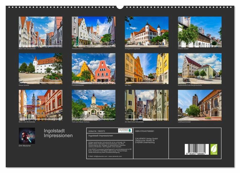 Der Fotograf Dirk Meutzner entführt Sie in diesem einmalig schönen Kalender nach Ingolstadt. Sie werden Monat für Monat begeistert sein von diesen Bildern. Ingolstadt ist eine kreisfreie Großstadt an der Donau im Freistaat Bayern mit 136.981 Einwohnern. Sie ist nach München die zweitgrößte Stadt Oberbayerns.