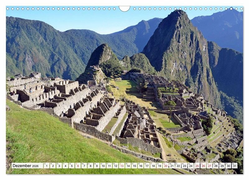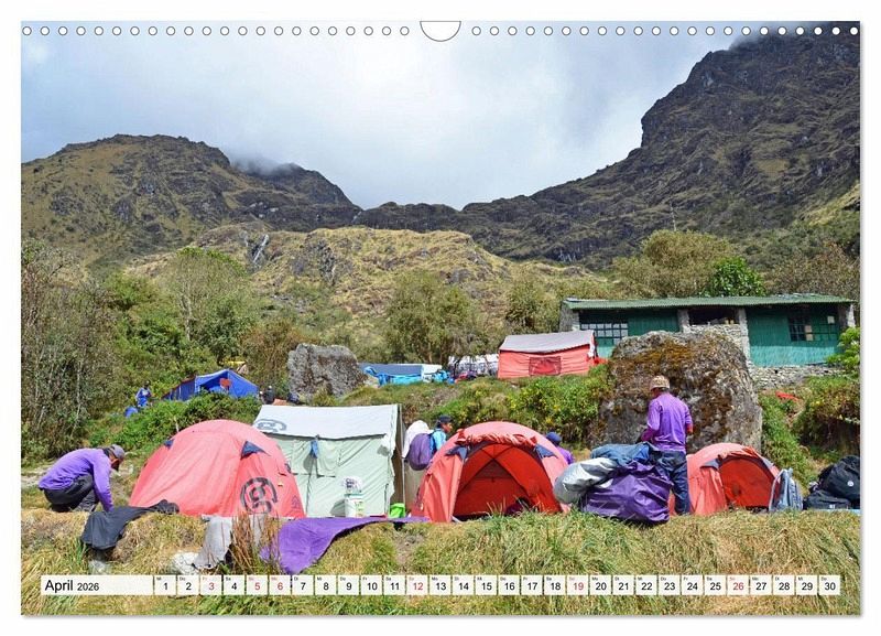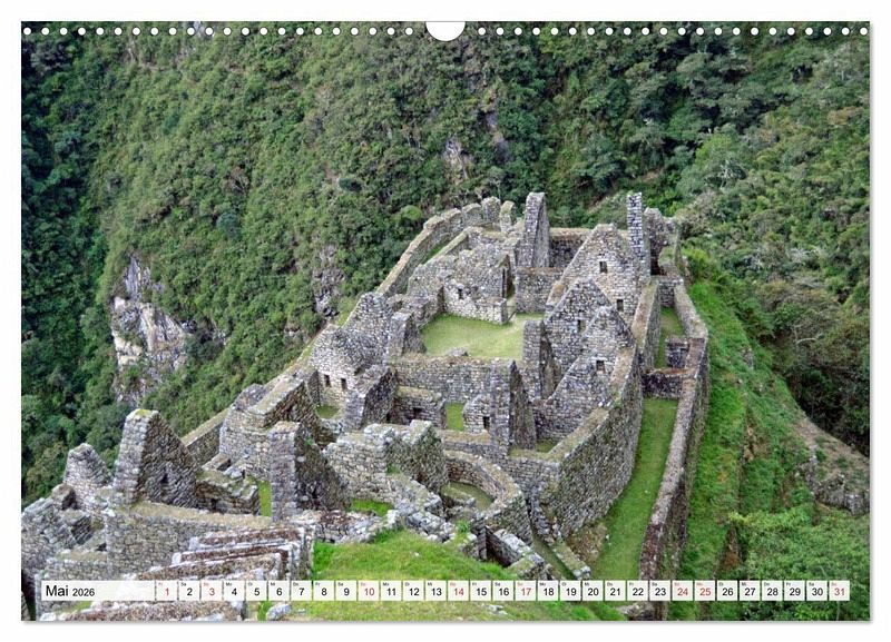 Der anspruchsvolle Inka Trail, Südamerikas berühmteste und meistbegangene Trekkingroute, führt vier Tage lang inmitten einer spektakulären Berglandschaft über drei Pässe mit Höhen von 4198 m, 3998 m und 3700 m. An der Strecke liegen mehrere Ruinenstädte der Inkas. Höhepunkt und Abschluss der großartigen Wanderung ist die berühmte, sehr gut erhaltene Inkastadt Machu Picchu, eines der Sieben Neuen Weltwunder. Der Autor präsentiert im Kalender einige seiner beeindruckenden Fotos vom Inka Trail und von Machu Picchu.