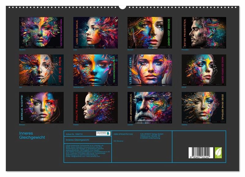 Wir Menschen leben nur eine bestimmte Zeit, jede Minute verlässt jemand diese Welt. Diese bestimmte Zeit sollte jeder von uns sinnvoll nutzen und dabei sein inneres Gleichgewicht, quasi die Balance zwischen Körper und Geist zu halten. Dieser wundervoll einmalige Kalender des Fotografen Dirk Meutzner hilft Ihnen Monat für Monat dabei, Sie werden sehen. Auch eignet sich dieser Kalender für die Menschen, die Ihnen etwas bedeuten und die Sie lieben. Kreiert wurden die Bilder durch eine KI und Photoshop.