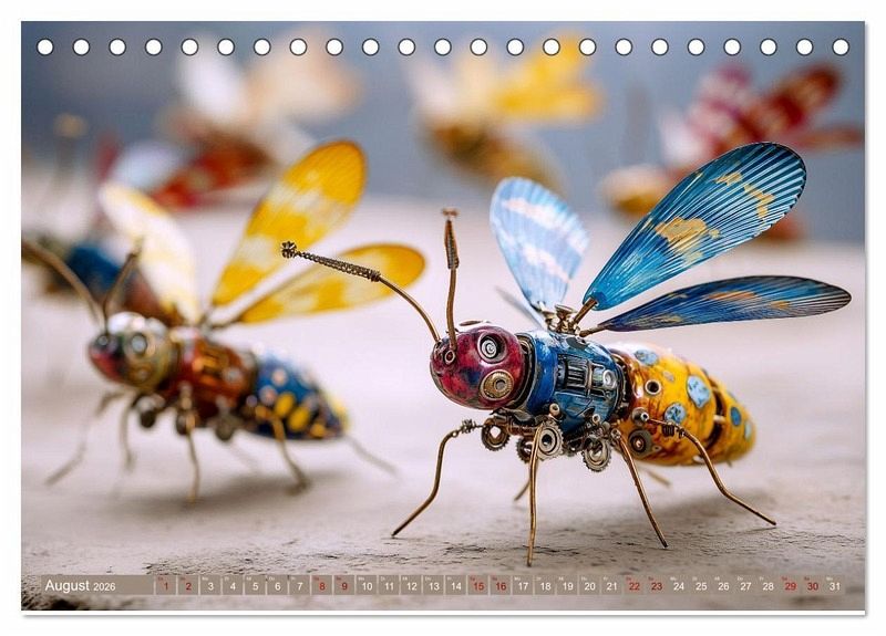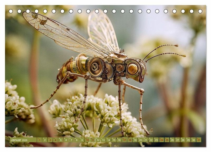 Was wäre, wenn Libellen aus Zahnrädern bestünden und Käferflügel aus Messingblech? Dieser Kalender zeigt faszinierende, KI-generierte Fantasiewesen im Insektenformat - metallisch, filigran und scheinbar lebendig. Zwischen Naturanmutung und mechanischer Präzision entfalten sich "Insecta Mechanica": kleine Flugkörper mit durchscheinenden Flügeln, Kupfergelenken und poetischen Namen. Jedes Motiv ist eine Verschmelzung aus Formen der Natur und visionärer Technik - ein Spiel aus Leichtigkeit und Konstruktion, erschaffen durch künstliche Intelligenz. Für alle, die sich für Design, Sci-Fi, Naturästhetik oder kreative KI-Bildwelten begeistern.