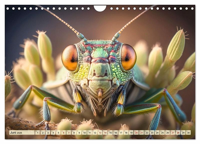 Tauchen sie ein, in die Welt der kleinen Insekten. Von der Heuschrecke über den Marienkäfer bis zur Ameise präsentieren wir Ihnen die kleinen Tierchen in ganz gross. Ein muss für jeden Tierliebhaber. Auch wenn die dargestellten Bilder nicht ganz ernst zu nehmen sind, sie sind ein Hingucker in jeder Hinsicht.