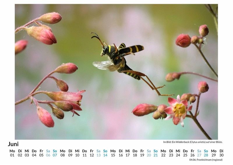 Entdecken Sie die faszinierende Welt der Insekten im Blütenanflug mit unserem hochwertigen Wandkalender! Monat für Monat erwarten Sie atemberaubende Nahaufnahmen von Bienen, Schmetterlingen und anderen Bestäubern, die in ihrer natürlichen Pracht festgehalten wurden. Jedes der 12 liebevoll ausgewählten Motive bringt die Schönheit und Vielfalt der Natur direkt in Ihr Zuhause. Gedruckt auf FSC-zertifiziertem, lichtbeständigem Bilderdruckpapier, garantiert dieser Kalender nicht nur brillante Farben, sondern auch Nachhaltigkeit. Hergestellt in Deutschland, ist er das perfekte Geschenk für Naturliebhaber oder eine stilvolle Ergänzung für Ihre eigenen vier Wände. Sichern Sie sich jetzt Ihr Exemplar! Hochwertig Erleben Sie ein Jahr voller Eleganz mit unserem Premium-Fotokalender. Jedes der 12 Motive ist auf hochwertigem, lichtbeständigem Bilderdruckpapier gedruckt, um die Lebendigkeit jedes Bildes zu bewahren. Die robuste Spiralbindung gewährleistet Langlebigkeit und einfache Handhabung. Nachhaltig Unser Engagement für die Umwelt spiegelt sich in jedem Exemplar wider. Durch die Produktion auf Abruf reduzieren wir signifikant unseren Abfall. Wir verwenden ausschließlich umweltfreundliches, FSC-zertifiziertes Papier. Stolz gefertigt in Deutschland, achten wir bei unserer Logistik auf Klimaschutz, um unseren ökologischen Fußabdruck zu minimieren. Das ideale Geschenk Dieser Kalender ist das perfekte Präsent für jeden Anlass - ob Weihnachten, Geburtstage oder einfach als liebevolle Aufmerksamkeit zwischendurch. Geeignet für Freunde, Familie, Kinder und Erwachsene gleichermaßen, bereichert er jedes Zuhause mit seiner Vielfalt und Schönheit, unabhängig vom Alter der Beschenkten.