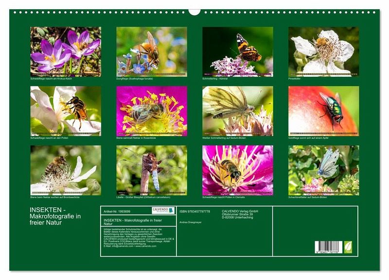 Die Wunderwelt der Insekten in atemberaubenden Groß-Aufnahmen. Die Nahaufnahmen der kleinen fliegenden Tierchen auf den buntern Blüten faszinieren den Betrachter. Lassen Sie sich Monat für Monat faszinieren von den kleinen Nützlingen in freier Natur.