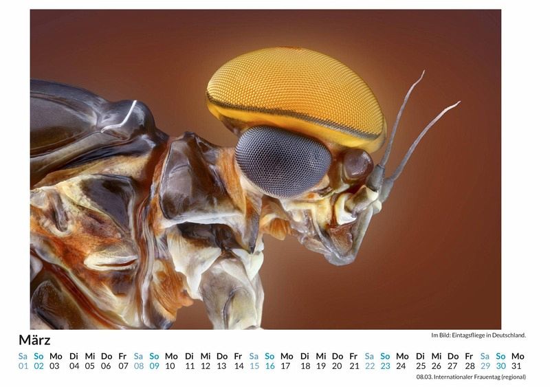 Entdecken Sie die faszinierende Welt der Insekten in beeindruckenden Nahaufnahmen! Dieser hochwertige Wandkalender zeigt 12 atemberaubende Motive, die die filigrane Schönheit und Vielfalt der kleinen Krabbler in nie dagewesener Detailtreue einfangen. Gedruckt auf lichtbeständigem, FSC-zertifiziertem Bilderdruckpapier, bringt dieser Kalender nicht nur Natur in Ihr Zuhause, sondern auch Nachhaltigkeit. Perfekt für Naturliebhaber und Fotografie-Enthusiasten, die das Besondere suchen. Hergestellt in Deutschland, überzeugt er durch exzellente Druckqualität und umweltfreundliche Produktion. Holen Sie sich ein Stück Natur an Ihre Wand ¿ Monat für Monat ein neues Highlight! Hochwertig Erleben Sie ein Jahr voller Eleganz mit unserem Premium-Fotokalender. Jedes der 12 Motive ist auf hochwertigem, lichtbeständigem Bilderdruckpapier gedruckt, um die Lebendigkeit jedes Bildes zu bewahren. Die robuste Spiralbindung gewährleistet Langlebigkeit und einfache Handhabung. Nachhaltig Unser Engagement für die Umwelt spiegelt sich in jedem Exemplar wider. Durch die Produktion auf Abruf reduzieren wir signifikant unseren Abfall. Wir verwenden ausschließlich umweltfreundliches, FSC-zertifiziertes Papier. Stolz gefertigt in Deutschland, achten wir bei unserer Logistik auf Klimaschutz, um unseren ökologischen Fußabdruck zu minimieren. Das ideale Geschenk Dieser Kalender ist das perfekte Präsent für jeden Anlass ¿ ob Weihnachten, Geburtstage oder einfach als liebevolle Aufmerksamkeit zwischendurch. Geeignet für Freunde, Familie, Kinder und Erwachsene gleichermaßen, bereichert er jedes Zuhause mit seiner Vielfalt und Schönheit, unabhängig vom Alter der Beschenkten.