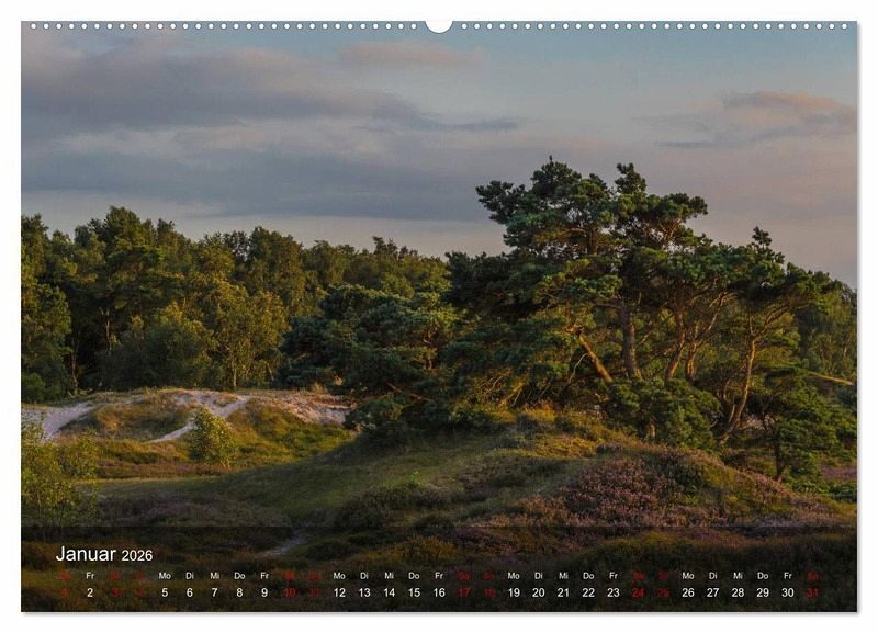 Mai: Heideblüte und Kiefern in der Dünenheide