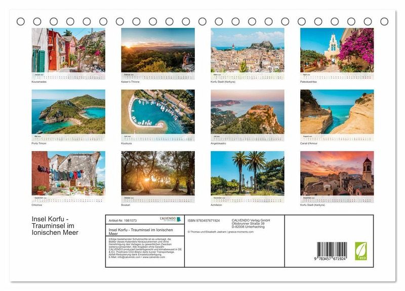 QUALITÄT - Hochwertiger Fotokalender mit 12 wunderschönen Motiven auf lichtbeständigem Bilderdruckpapier, robuste Spiralbindung.NACHHALTIG - deutliche Abfallreduzierung durch bedarfsgerechte Einzelstückfertigung, umweltfreundliches FSC-zertifiziertes Papier, Produktion in Deutschland, klimabewusste Logistik.PERFEKTES GESCHENK - Kalender für Freunde und Familie, für Kinder und Erwachsene, jung und alt, zu Weihnachten, Geburtstag oder zwischendurch.VIELFALT - Bildkalender in verschiedenen Formaten, z.B. DIN A5, DIN A4, DIN A3 sowie DIN A2. Ob Naturmotiv, Gemälde oder Fotos, ideal für ein persönliches Wohlfühlambiente.Wunderschöne Impressionen von der bezaubernden Insel Korfu, dem beliebtesten Eiland der Ionischen Inseln von Autor(in): Thomas Jastram
