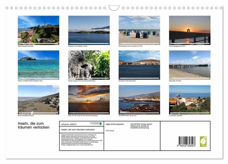 QUALITÄT - Hochwertiger Fotokalender mit 12 wunderschönen Motiven auf lichtbeständigem Bilderdruckpapier, robuste Spiralbindung mit Aufhängebügel.NACHHALTIG - deutliche Abfallreduzierung durch bedarfsgerechte Einzelstückfertigung, umweltfreundliches FSC-zertifiziertes Papier, Produktion in Deutschland, klimabewusste Logistik.PERFEKTES GESCHENK - Kalender für Freunde und Familie, für Kinder und Erwachsene, jung und alt, zu Weihnachten, Geburtstag oder zwischendurch.VIELFALT - Bildkalender in verschiedenen Formaten, z.B. DIN A5, DIN A4, DIN A3 sowie DIN A2. Ob Naturmotiv, Gemälde oder Fotos, ideal für ein persönliches Wohlfühlambiente.Entdecken Sie jeden Monat eine traumhafte Insel - Inspiration und Fernweh für das ganze Jahr! von Autor(in): Frank Gayde