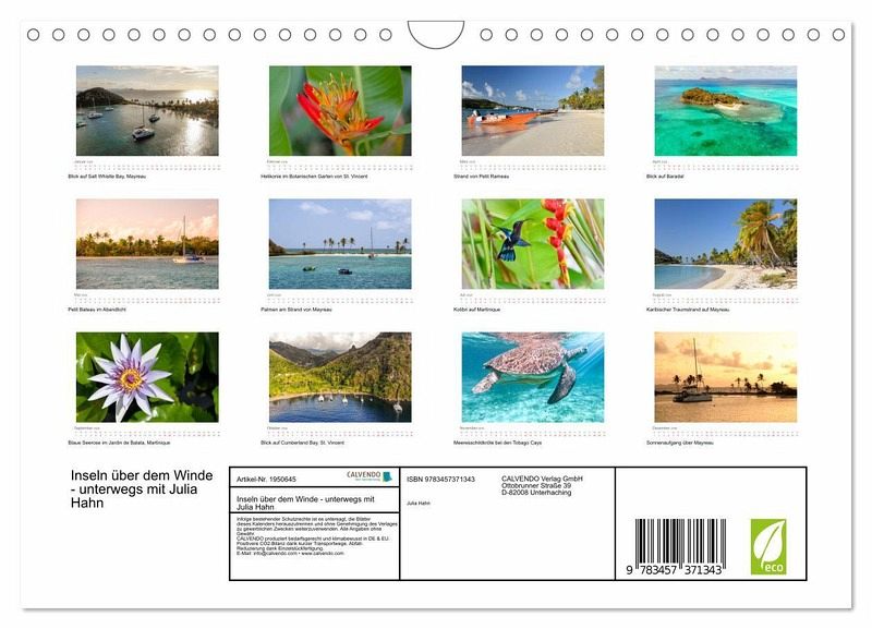 QUALITÄT - Hochwertiger Fotokalender mit 12 wunderschönen Motiven auf lichtbeständigem Bilderdruckpapier, robuste Spiralbindung mit Aufhängebügel.NACHHALTIG - deutliche Abfallreduzierung durch bedarfsgerechte Einzelstückfertigung, umweltfreundliches FSC-zertifiziertes Papier, Produktion in Deutschland, klimabewusste Logistik.PERFEKTES GESCHENK - Kalender für Freunde undFamilie, für Kinder und Erwachsene, jung und alt, zu Weihnachten, Geburtstag oder zwischendurch.VIELFALT - Bildkalender in verschiedenen Formaten, z.B. DIN A5, DIN A4, DIN A3 sowie DIN A2. Ob Naturmotiv, Gemälde oder Fotos, ideal für ein persönliches Wohlfühlambiente.Die karibischen Inseln über dem Winde sind ein Paradies auf Erden mit türkisblauem Meer und traumhaften Sandstränden. von Autor(in): Julia Hahn