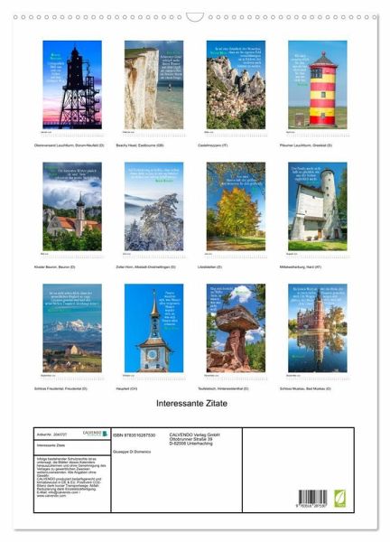 QUALITÄT - Hochwertiger Fotokalender mit 12 wunderschönen Motiven auf lichtbeständigem Bilderdruckpapier, robuste Spiralbindung mit Aufhängebügel.NACHHALTIG - deutliche Abfallreduzierung durch bedarfsgerechte Einzelstückfertigung, umweltfreundliches FSC-zertifiziertes Papier, Produktion in Deutschland, klimabewusste Logistik.PERFEKTES GESCHENK - Kalender für Freunde und Familie, für Kinder und Erwachsene, jung und alt, zu Weihnachten, Geburtstag oder zwischendurch.VIELFALT - Bildkalender in verschiedenen Formaten, z.B. DIN A5, DIN A4, DIN A3 sowie DIN A2. Ob Naturmotiv, Gemälde oder Fotos, ideal für ein persönliches Wohlfühlambiente.Stimmungsvolle Landschaftsfotos kombiniert mit weisen Sprüchen von Autor(in): Giuseppe Di Domenico